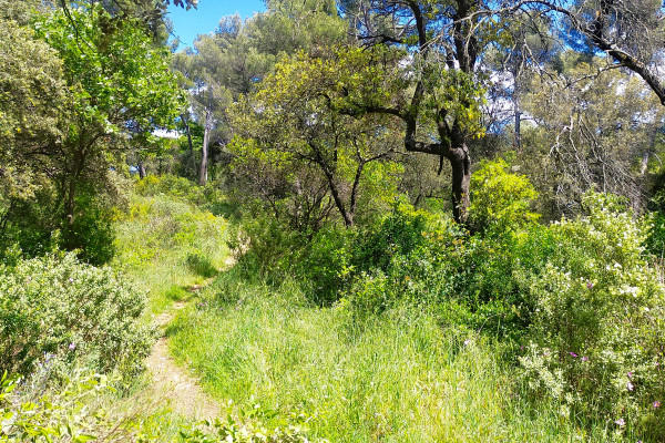 Après un bout de chemin sauvage entre garrigue et falaises , nous redescendrons progressivement